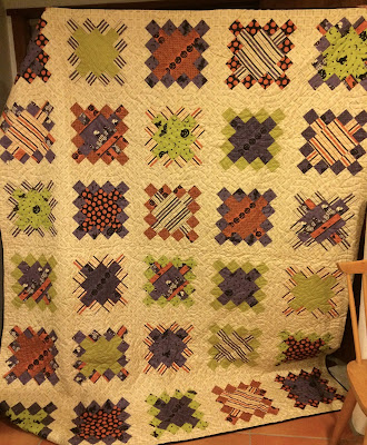 I love this quilt. It is on the bed now since it's after Labor Day and in my book, we can get Halloween stuff out.